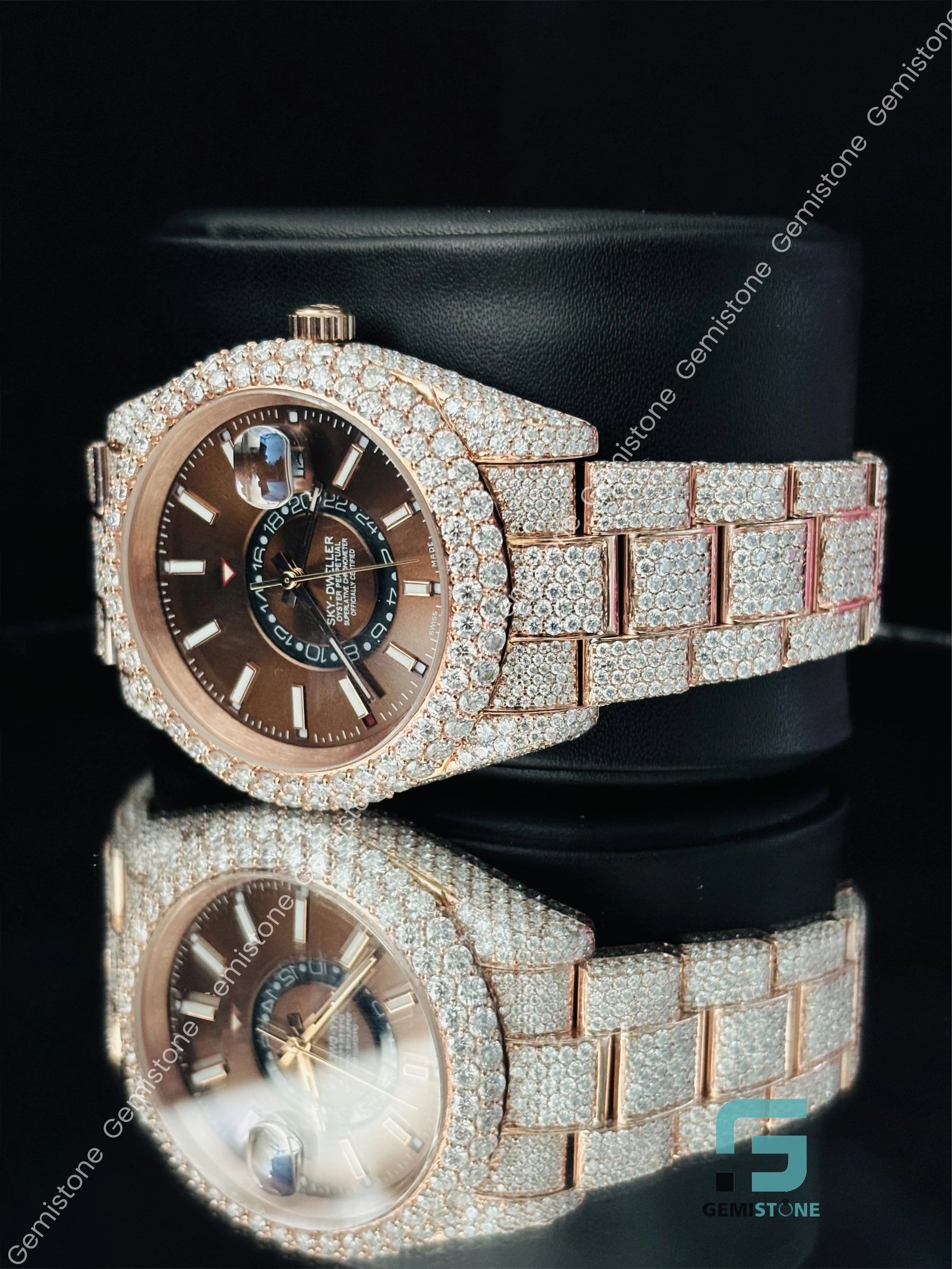 41MM Sky Dweller Chocolate Dial Moissanite Bust Down Watch