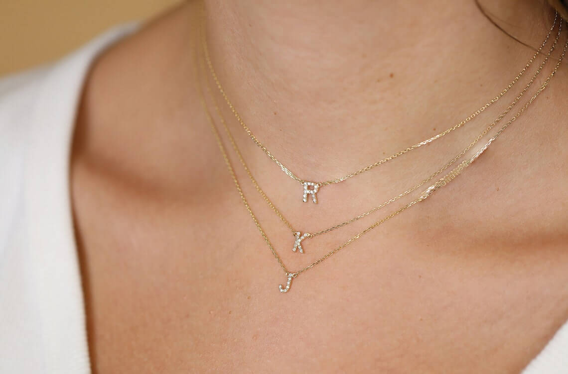 Personalized Diamond Letter Necklace | Custom Diamond Initial "A" Letter Necklace
