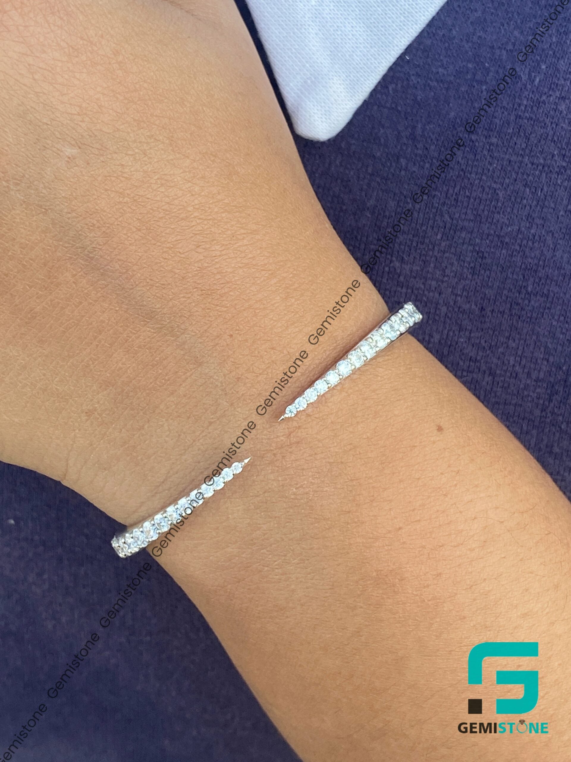 Round Cut Moissanite Diamond Claw Cuff Bracelet