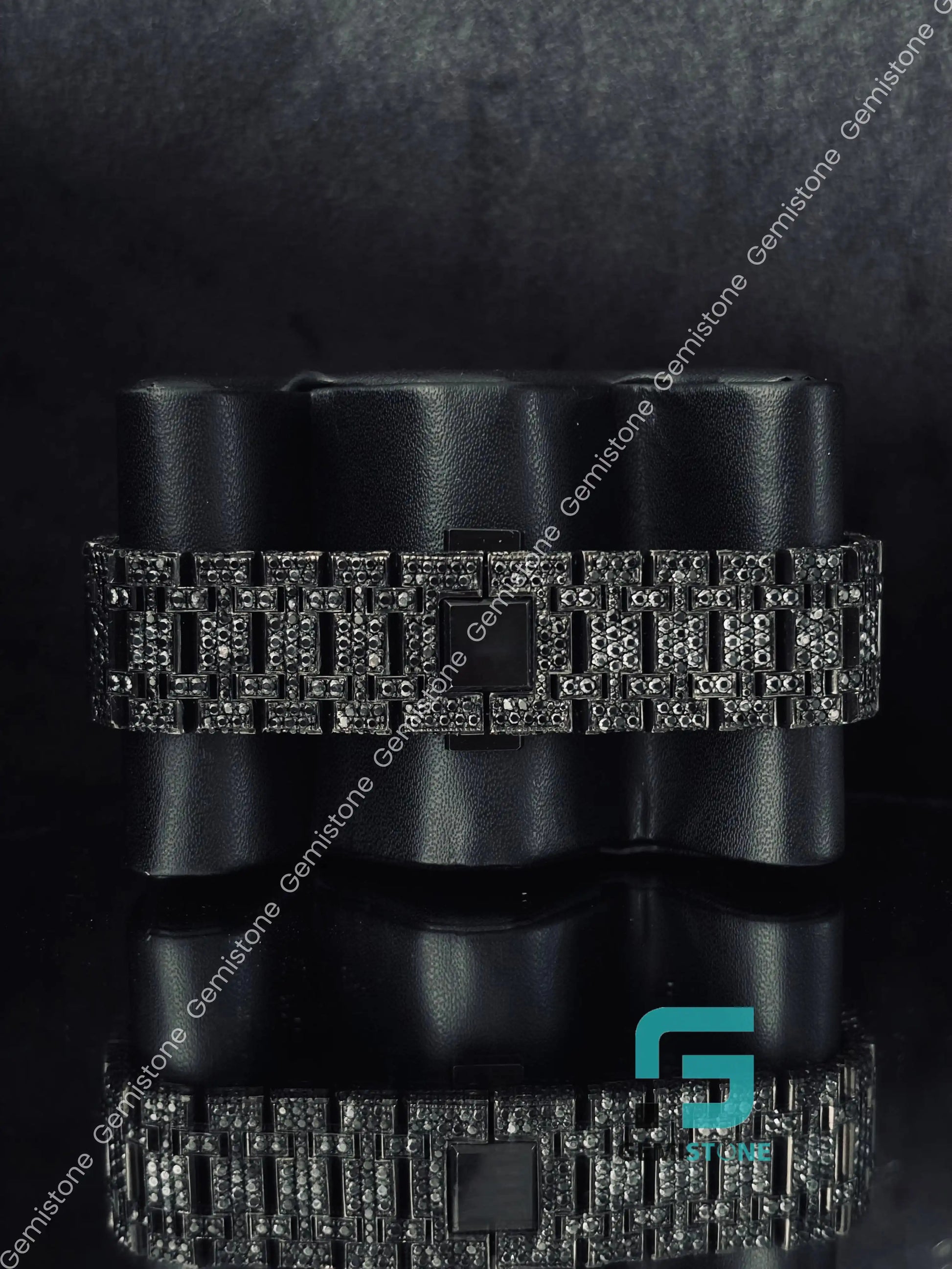 - Fully Iced with 28 to 30 CTW Black Onyx Opaque Clarity Real Moissanite Stones.
