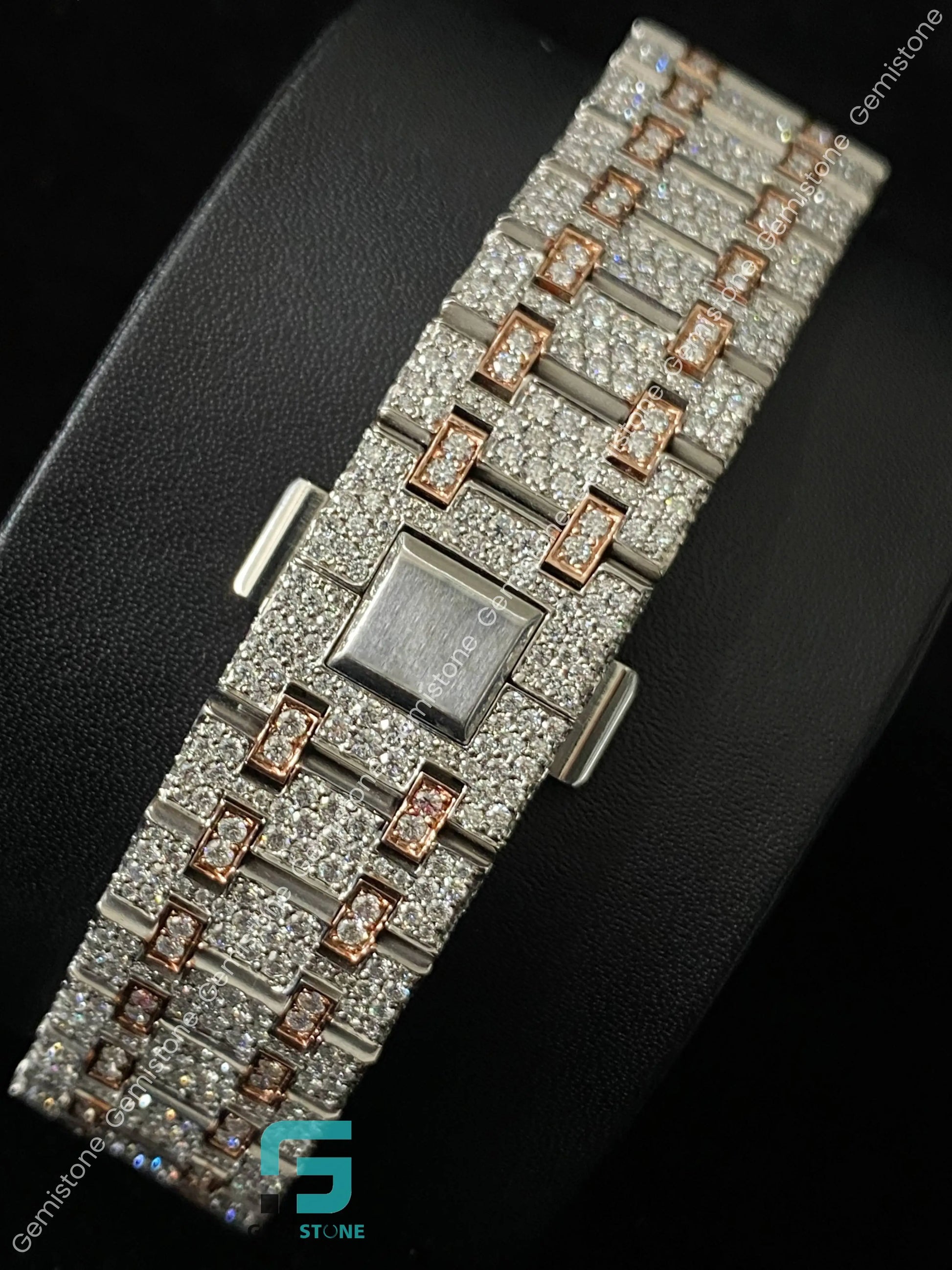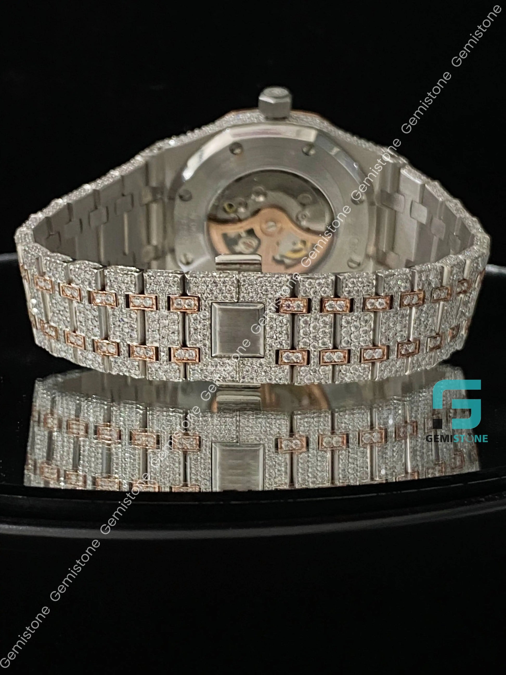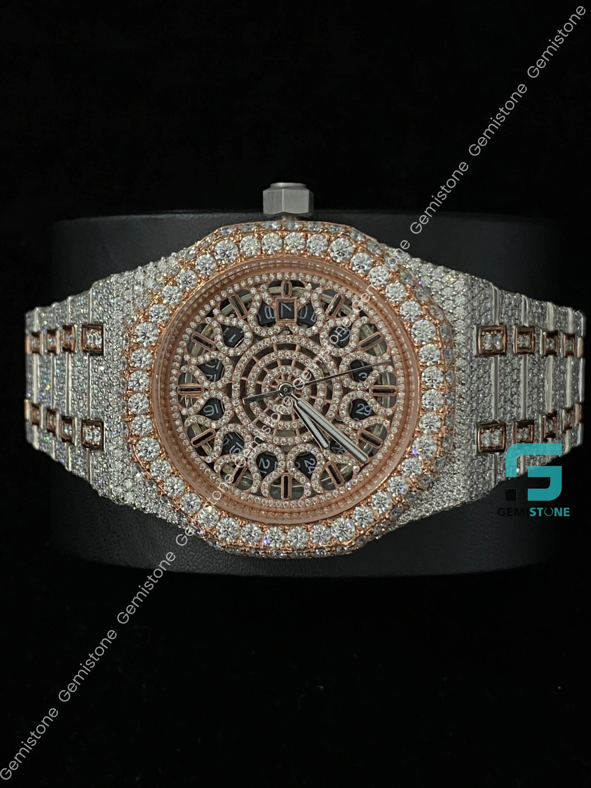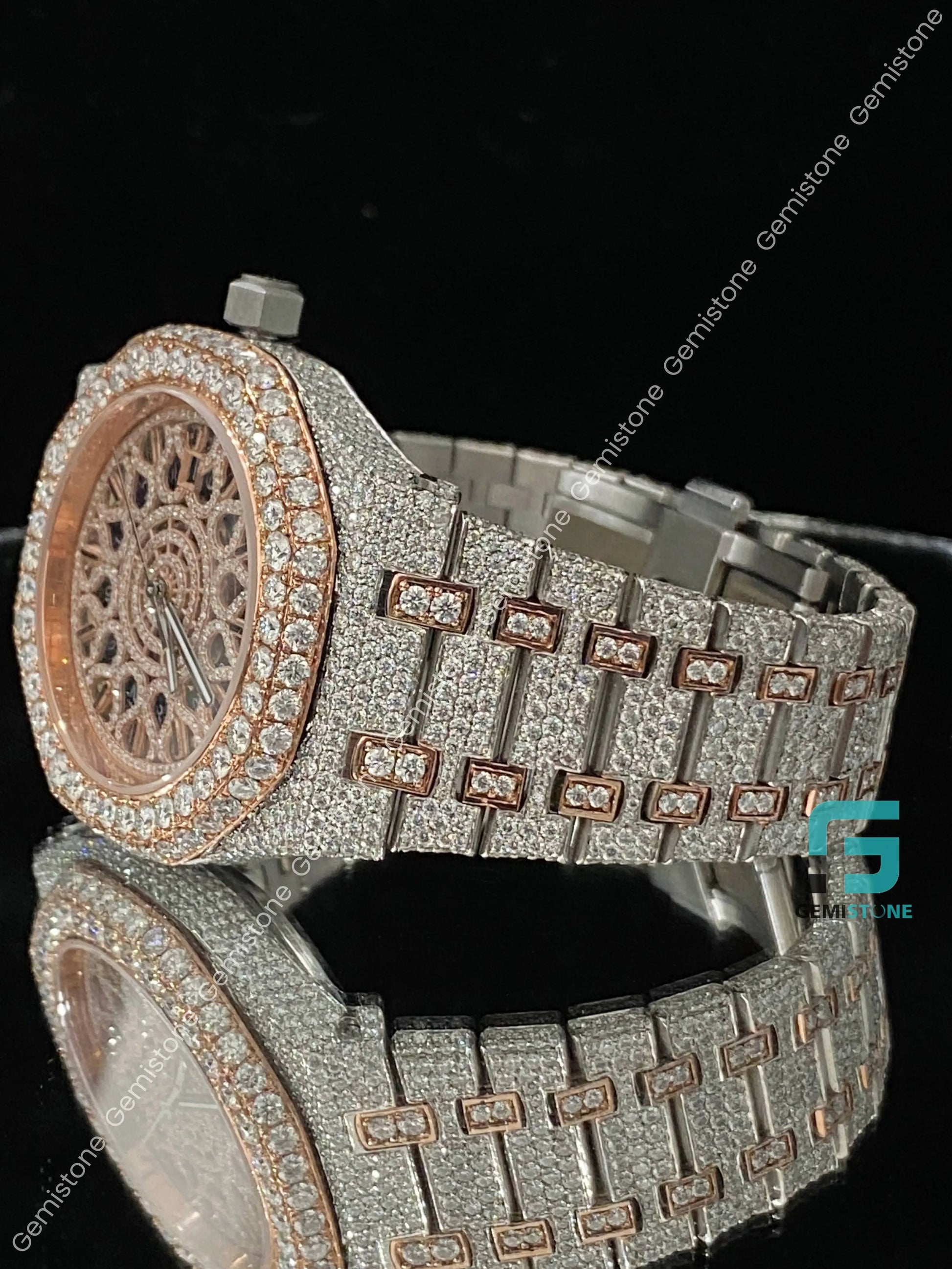 Two Tone Rose Gold Plated Skeleton Dial Moissanite Watch