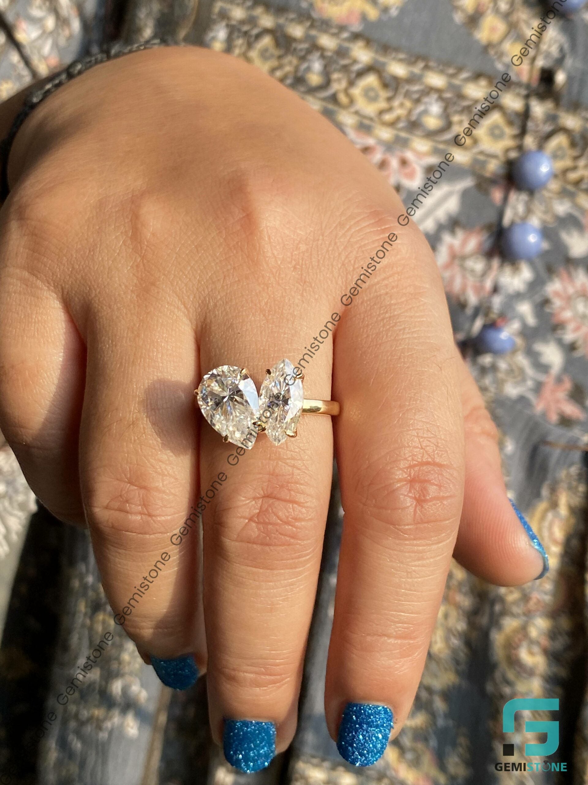 Marquise & Pear Cut Moissanite Toi et Moi Engagement Ring For Women